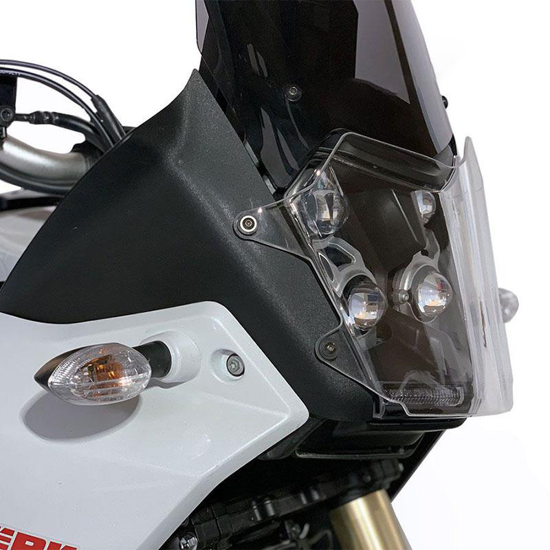 Protection de la lumière avant en matériau antichoc transparent, avec kit de vis de montage.