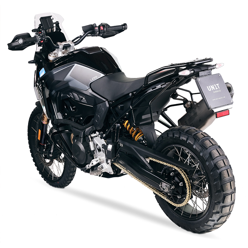 Conçu sur le cadre de la BMW F900GS, il s'intègre parfaitement au reste de la moto. Prêt à accueillir notre système d'attache rapide, beau et minimaliste même lorsque le sac n'est pas monté. Il peut être utilisé confortablement avec un passager à bord et est compatible avec notre porte-bagages.