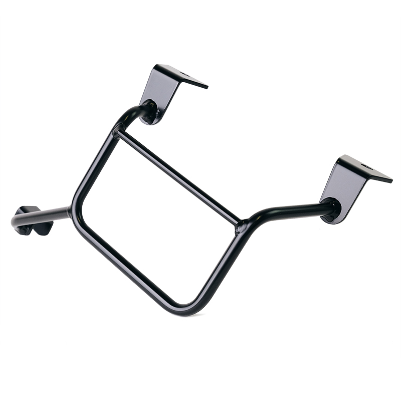 Cadre gauche en acier traité avec une finition en poudre époxy noir mat.