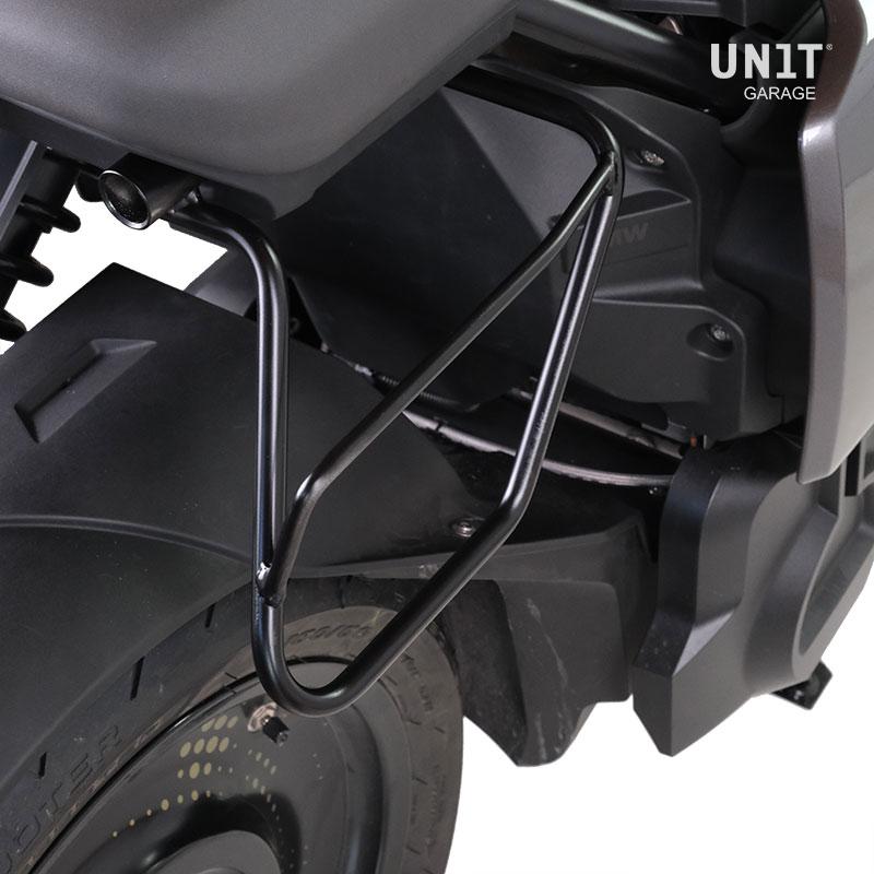 Conçu sur le cadre BMW CE 04, il s'intègre parfaitement au reste de la moto. Prêt à accueillir notre système de fixation rapide, beau et minimal même lorsque le sac n'est pas monté. Il peut être utilisé confortablement avec le passager à bord.