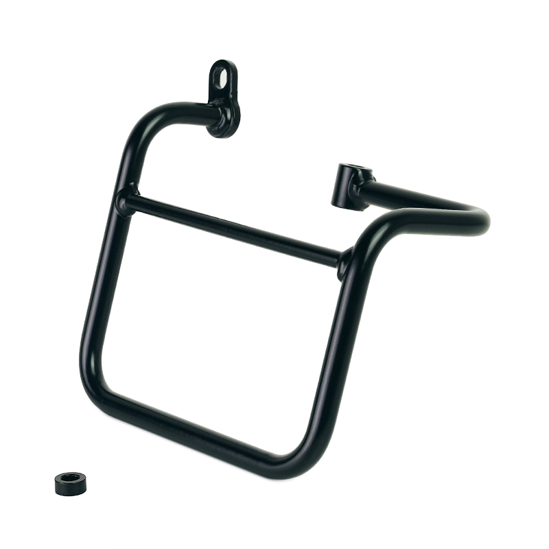 Cadre gauche en acier traité avec une finition en poudre époxy noir mat.