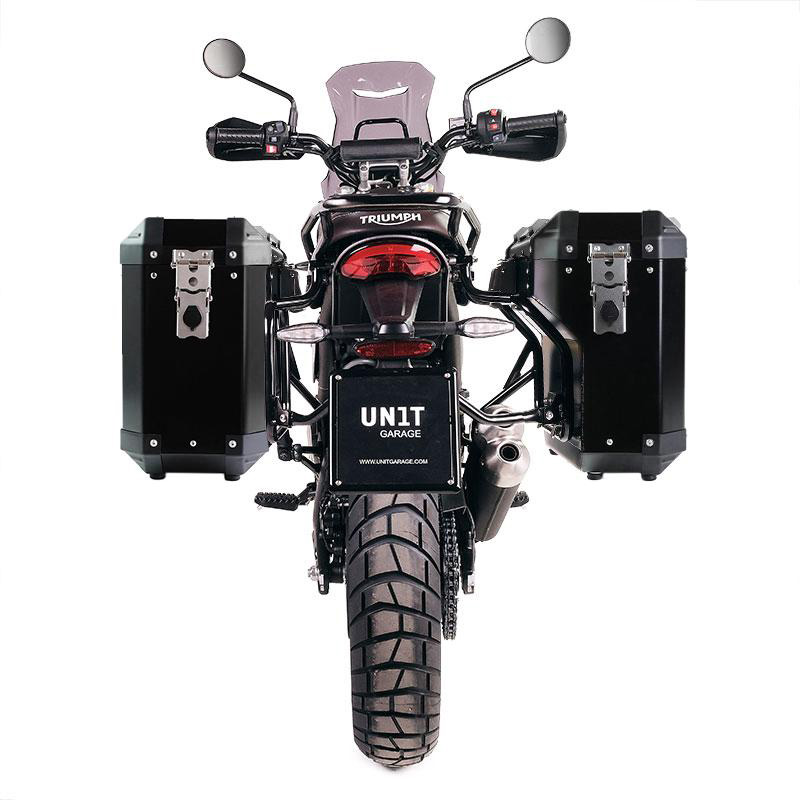 Paire de sacoches latérales. Version 40L+34L (côté échappement)