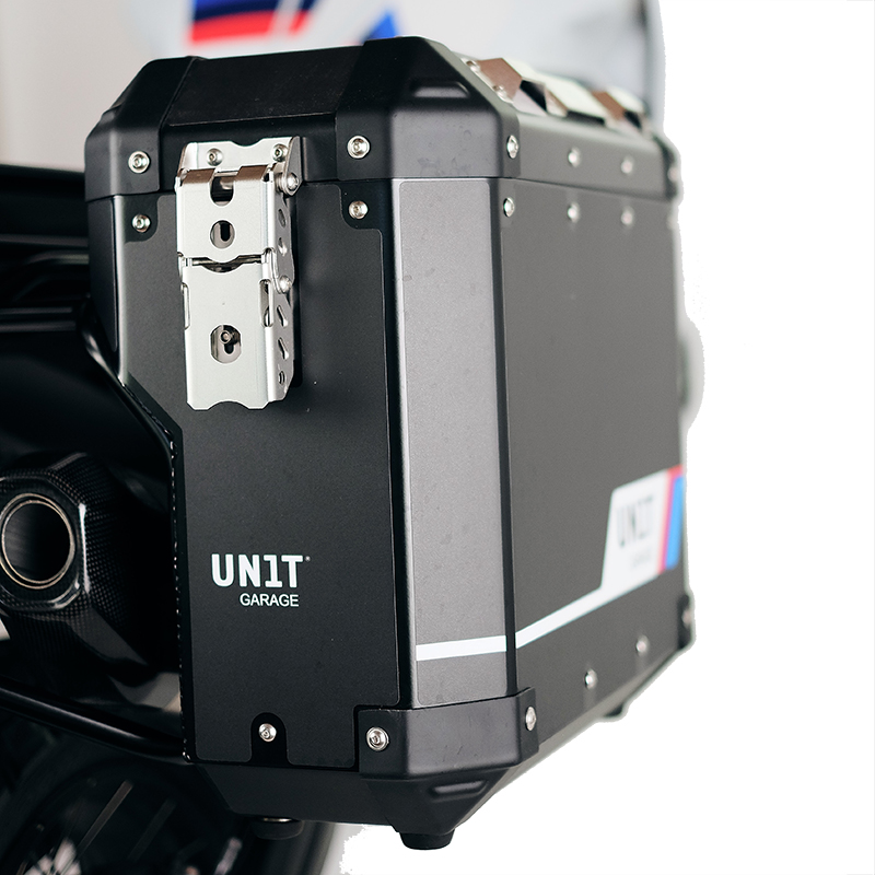 Nous voulions des sacs classiques, robustes et élégants avec de belles fermetures éclair en acier et des détails bien pensés : des détails conçus pour l'aventure et conçus pour résister à toutes les conditions. Ils peuvent être fixés sur n'importe quel cadre en tube rond de diamètre 18 mm grâce au système de crochet de sécurité positionné au dos du sac. La fermeture s'élargit automatiquement pour faciliter le montage et le démontage du cadre du sac. Le levier interne est usiné CNC à partir d'un alliage d'aluminium solide de haute qualité. Le couvercle est entièrement amovible et peut être ouvert des deux côtés, il est équipé de fixations à l'intérieur, et une bande élastique est incluse pour servir de support pour les gants, les documents et les petits objets. Le support du couvercle est en cuir avec des boutons-pression amovibles. Les serrures sont conçues pour accueillir un cadenas supplémentaire en plus de celui fourni. Le corps du sac est entièrement doublé de néoprène robuste de 2,5 mm capable d'absorber les chocs. Les charnières, les serrures et tous les détails sont en acier inoxydable, brossé et électropoli, ce que vous ne trouverez dans aucun produit similaire sur le marché. Les coins sont fabriqués en ABS robuste et peuvent être remplacés en cas de chute, tout comme chaque composant individuel. Nos sacs en aluminium sont entièrement fabriqués en Italie, assemblés à la main un par un.
