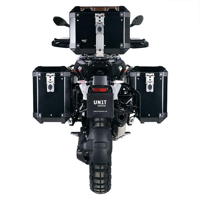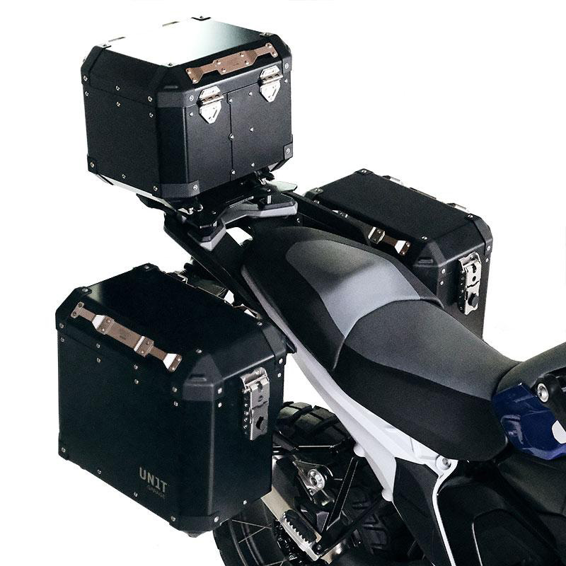Paire de sacoches latérales en aluminium. Version 47L + 41L (côté échappement)