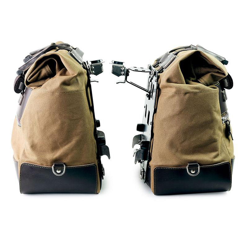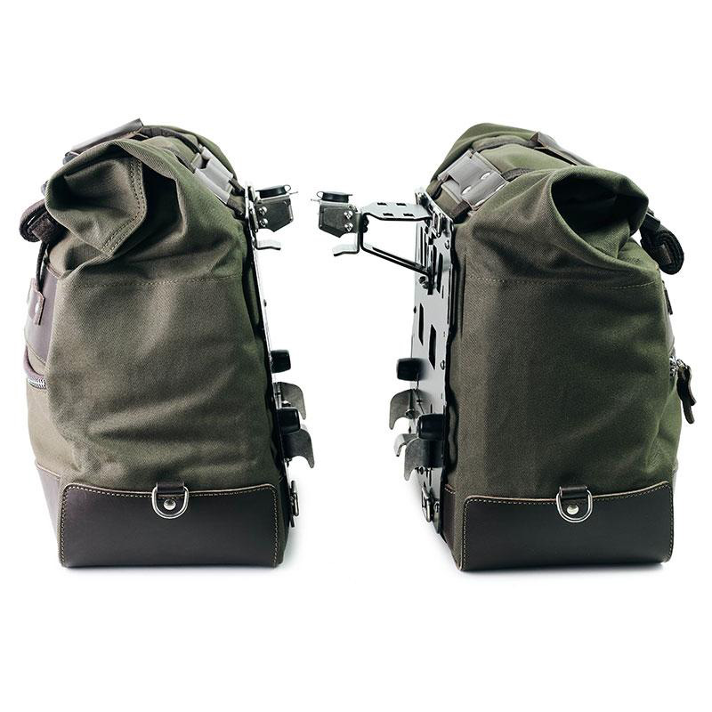 Paire de sacoches latérales Cult en coton imperméable avec plaques arrière en aluminium + attache rapide et serrure en acier inoxydable