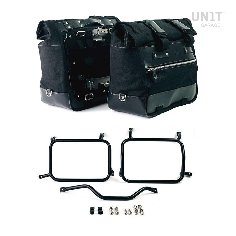 Paire de sacoches latérales Cult en coton imperméable avec plaques arrière en aluminium + attache rapide et serrure en acier inoxydable