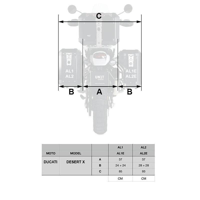 les modèles Ducati DesertX. Ils s'intègrent parfaitement au reste du vélo. Prêt à accueillir nos sacs en aluminium de différentes tailles. Livré complet avec kit de montage et vis. Il peut être monté sur la moto en combinaison avec nos accessoires