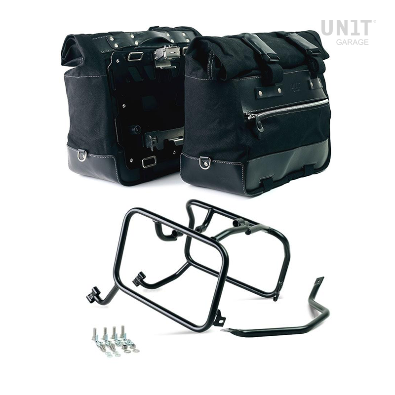 Paire de sacoches latérales Cult en coton imperméable avec plaques arrière en aluminium + attache rapide et serrure en acier inoxydable