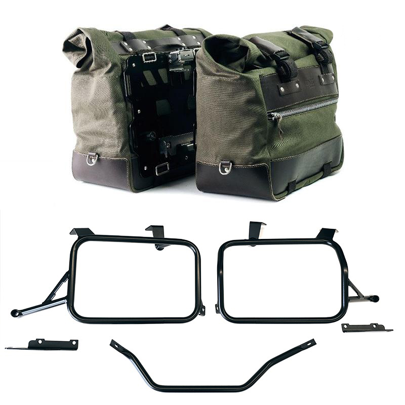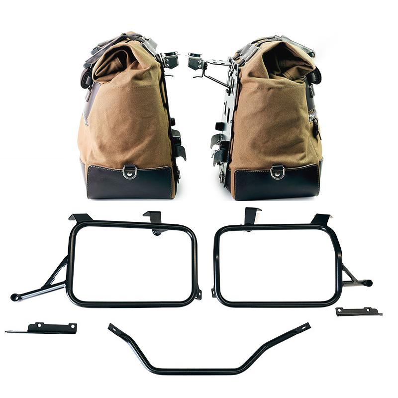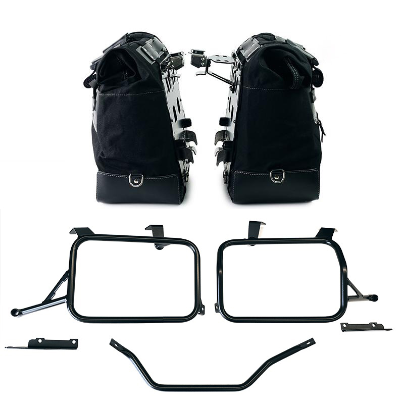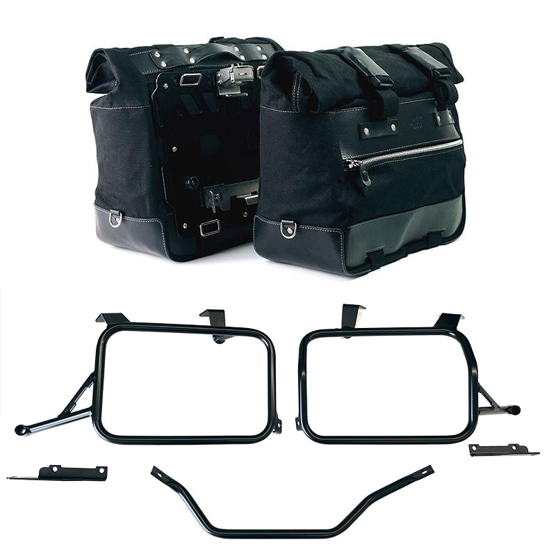 Paire de sacoches latérales Cult en coton imperméable avec plaques arrière en aluminium + attache rapide et serrure en acier inoxydable