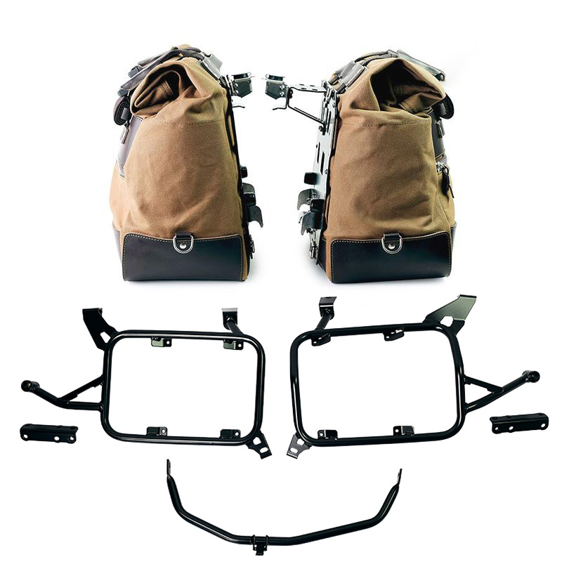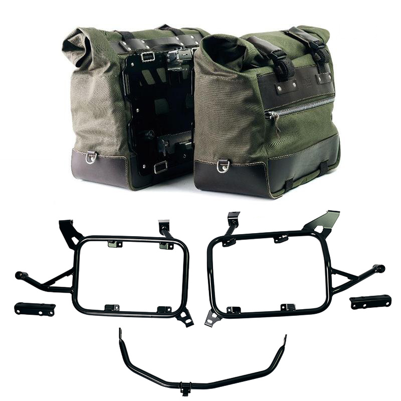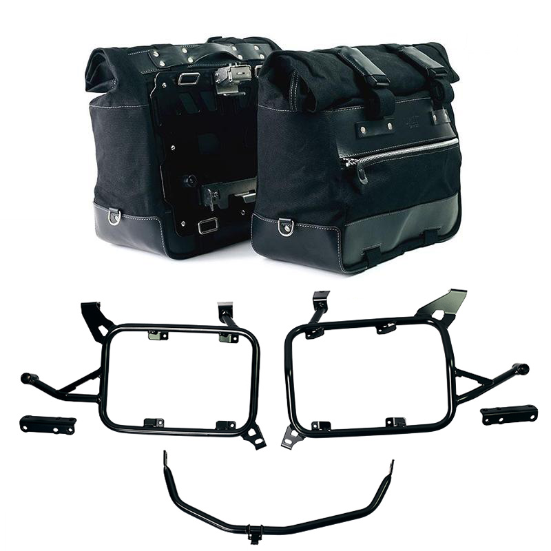 Paire de sacoches latérales Cult en coton imperméable avec plaques arrière en aluminium + attache rapide et verrouillage en acier inoxydable
