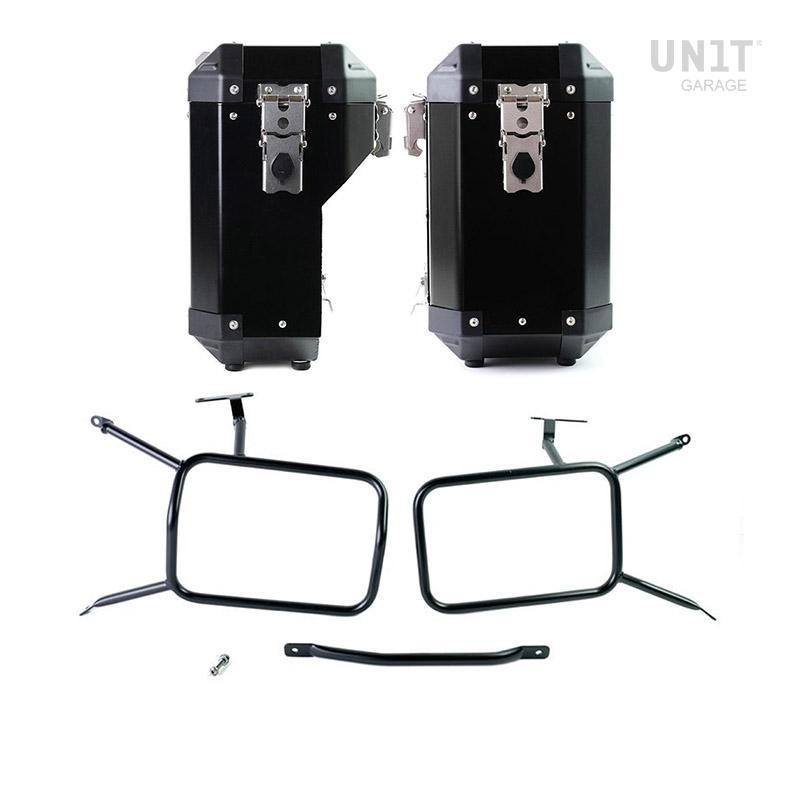 Paire de sacoches latérales. Version 40L+34L (côté échappement)