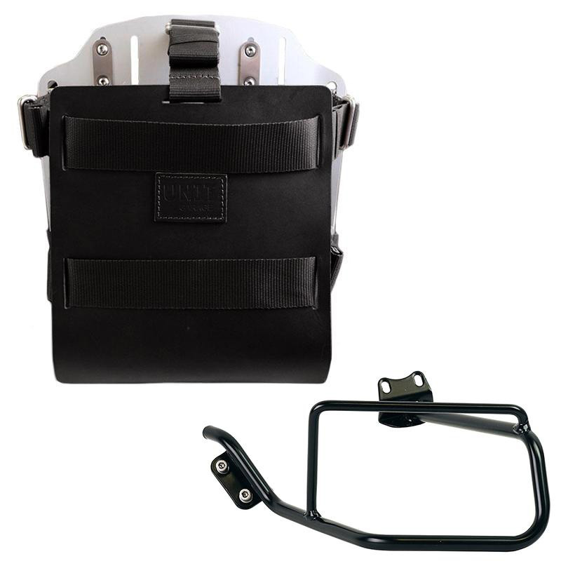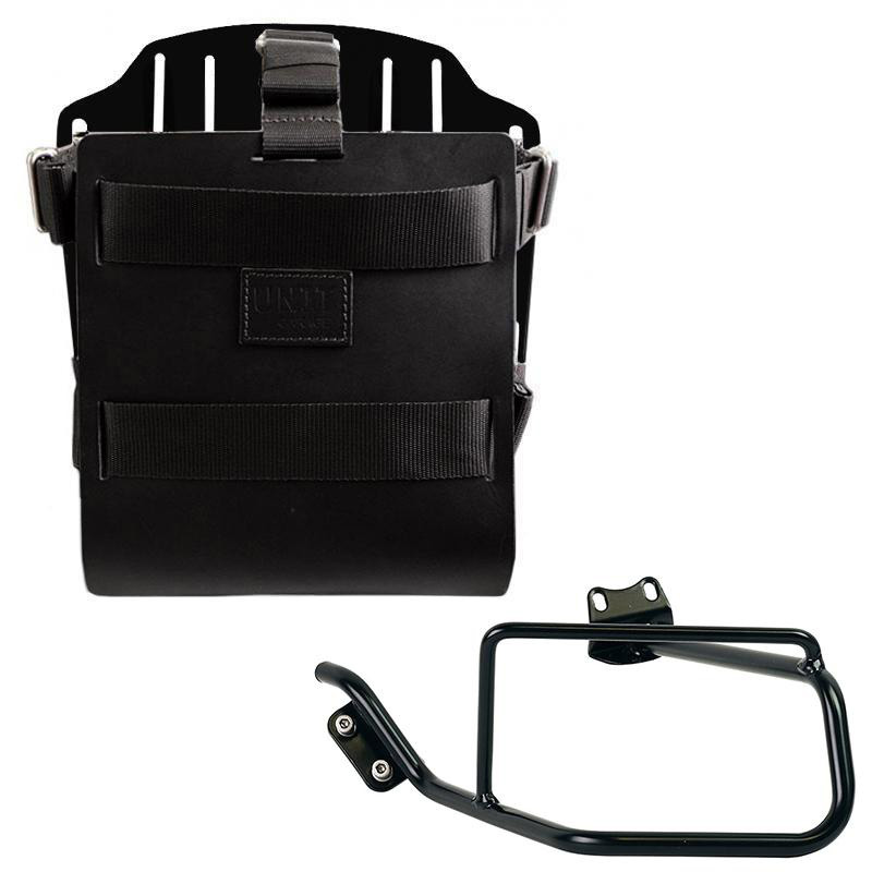 Porte-sac en aluminium avec façade en cuir réglable et attache rapide + Châssis BMW HP2 gauche