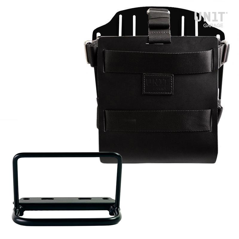 Porte-sac en aluminium avec façade en cuir réglable, attache rapide et cadre