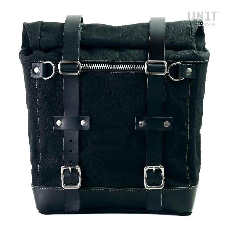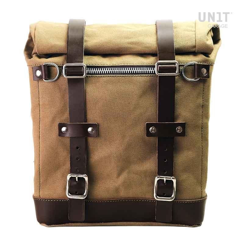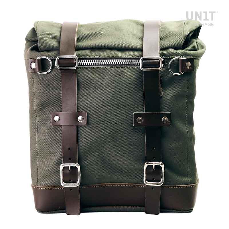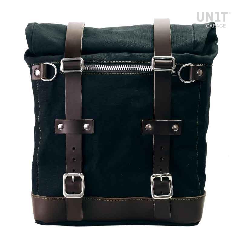 Sacoche latérale Scram extensible de 22 à 30 litres fabriquée à la main en Italie en coton imperméable robuste de la plus haute qualité.