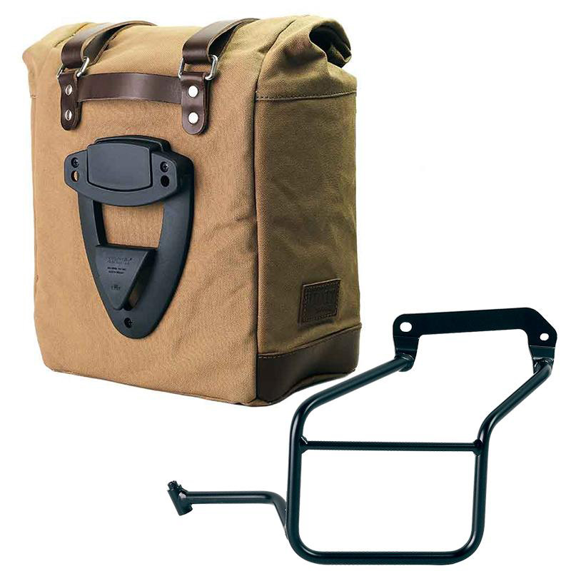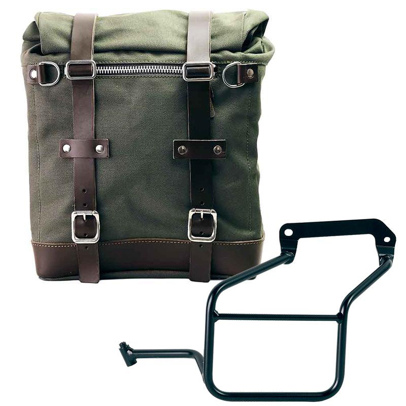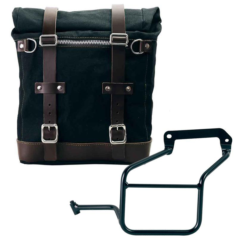 Sacoche latérale Scram extensible de 22 à 30 litres fabriquée à la main en Italie en coton imperméable robuste de la plus haute qualité.