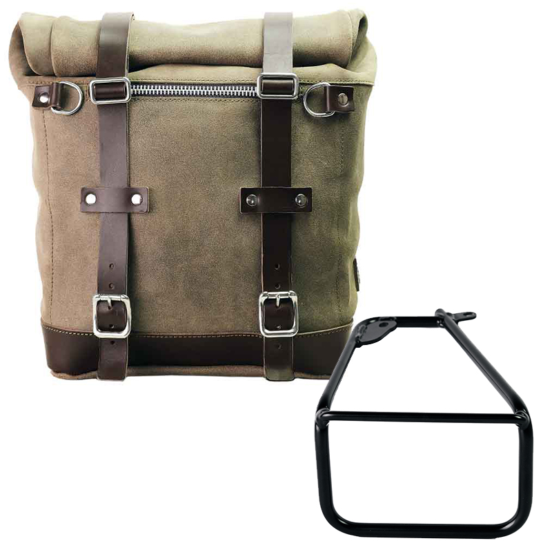 Sacoche latérale Scram extensible de 22 à 30 litres fabriquée à la main en Italie en croûte de cuir imperméable robuste de première qualité.