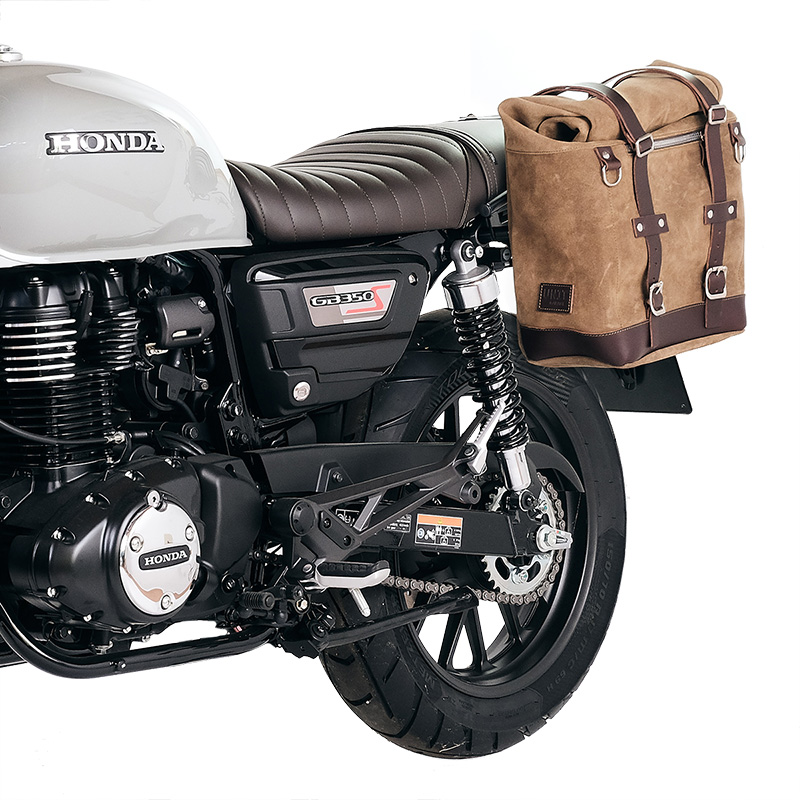 Conçu sur le cadre Honda GB350S, il s'intègre parfaitement au reste de la moto. Prêt à accueillir notre système d'attache rapide, beau et minimaliste même lorsque le sac n'est pas monté. Il peut être utilisé confortablement avec un passager à bord.