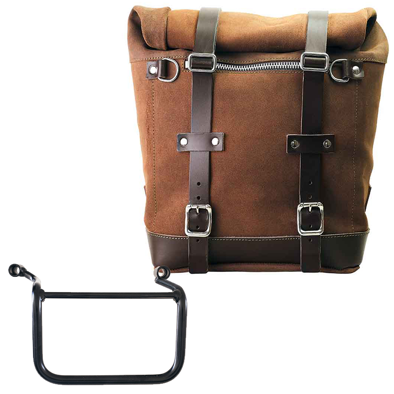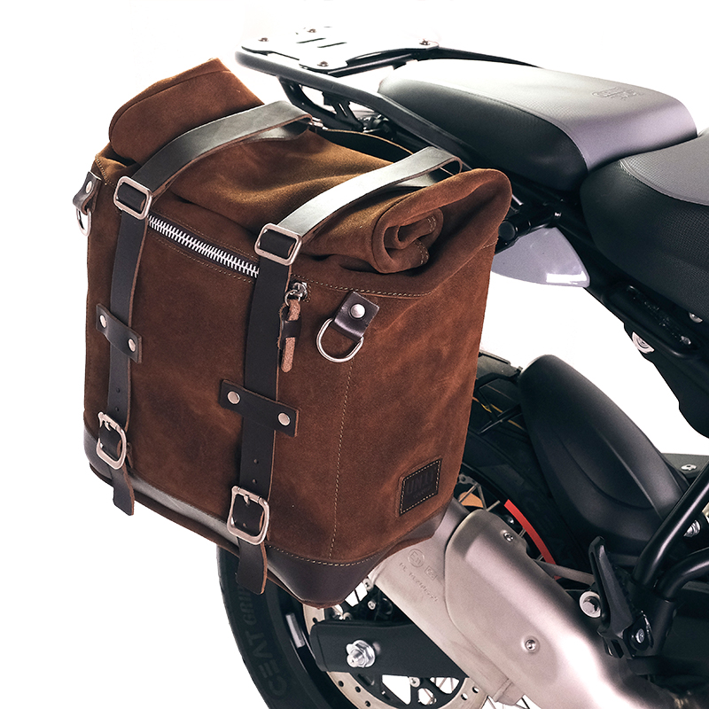 Sacoche latérale Scram extensible de 22 à 30 litres fabriquée à la main en Italie en croûte de cuir imperméable robuste de première qualité.