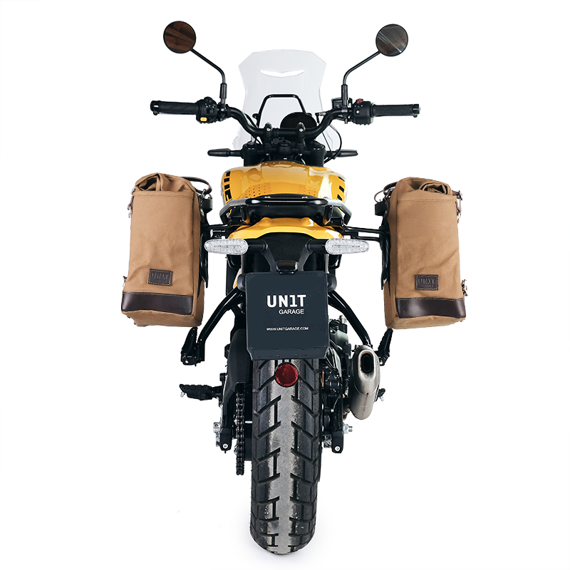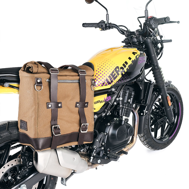 Conçu sur le châssis Royal Enfield. Il s'intègre parfaitement au reste du vélo. Prêt à accueillir notre système d'attache rapide, beau et minimal même lorsque le sac n'est pas monté. Il peut être utilisé confortablement avec le passager à bord et est compatible avec nos barres de toit.
