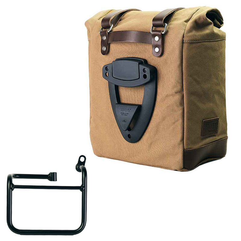 Sacoche latérale Scram extensible de 22 à 30 litres fabriquée à la main en Italie en coton imperméable robuste de la plus haute qualité.