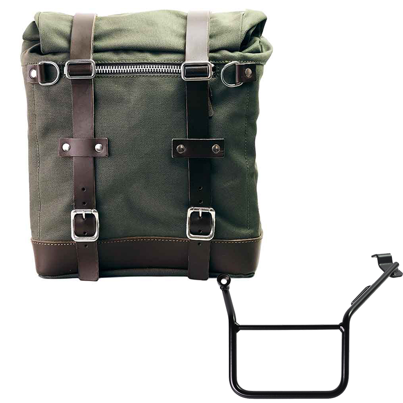 Sacoche latérale Scram extensible de 22 à 30 litres fabriquée à la main en Italie en coton imperméable robuste de la plus haute qualité.