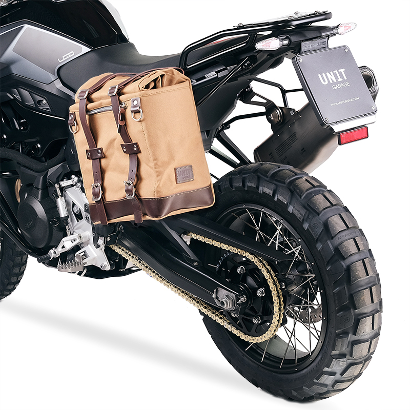 Conçu sur le cadre de la BMW F900GS, il s'intègre parfaitement au reste de la moto. Prêt à accueillir notre système d'attache rapide, beau et minimaliste même lorsque le sac n'est pas monté. Il peut être utilisé confortablement avec un passager à bord et est compatible avec notre porte-bagages.