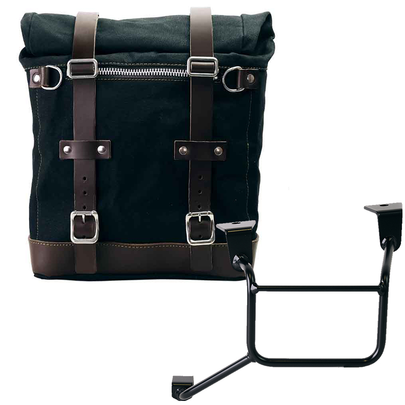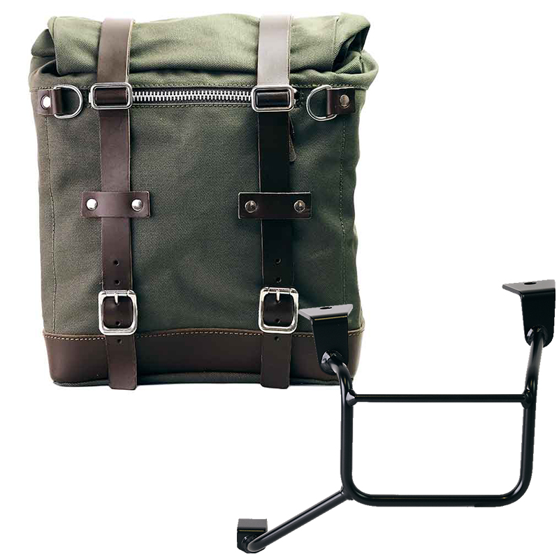 Sacoche latérale Scram extensible de 22 à 30 litres fabriquée à la main en Italie en coton imperméable robuste de la plus haute qualité.
