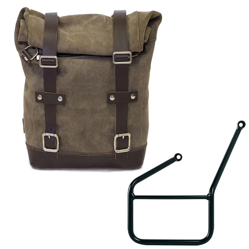Traité avec de la cire qui le rend résistant à l'eau. Avec une attention aux moindres détails avec des finitions en cuir de 3 mm, simples et pures comme les matériaux avec lesquels il a été construit. Il se fixe rapidement à notre cadre porte-sac grâce au système de dégagement rapide appliqué à l'arrière du sac qui est équipé d'un cadenas pour le verrouillage. Il peut contenir un ordinateur portable 15" à l'intérieur, il est équipé d'une grande poche zippée pour téléphone et documents.