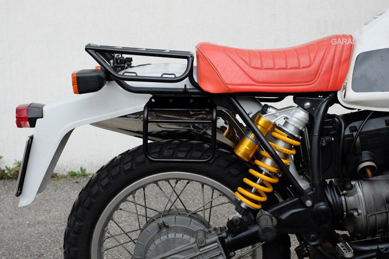 Conçu sur la BMW R80 G/S, il s'intègre parfaitement au reste de la moto. Prêt à accueillir notre système d'attache rapide, beau et minimal même lorsque le sac n'est pas monté.