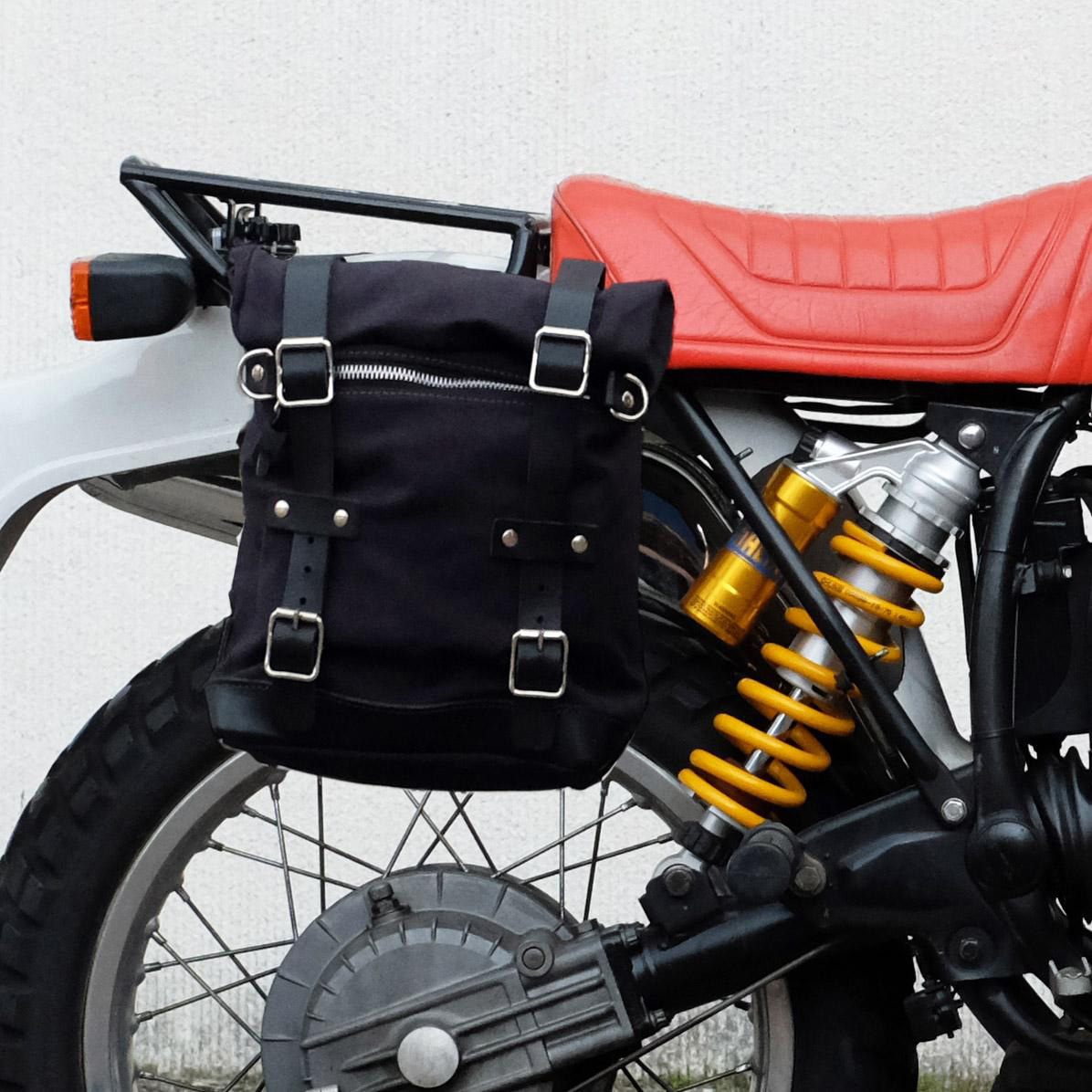 Sacoche latérale Scram extensible de 22 à 30 litres fabriquée à la main en Italie en coton imperméable robuste et de première qualité.