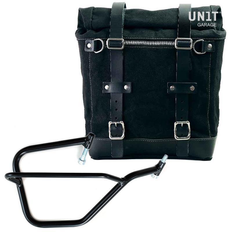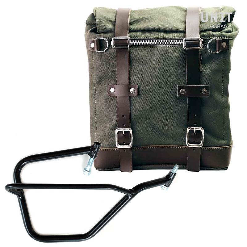 Sacoche latérale Scram extensible de 22 à 30 litres fabriquée à la main en Italie en coton imperméable robuste de la plus haute qualité.