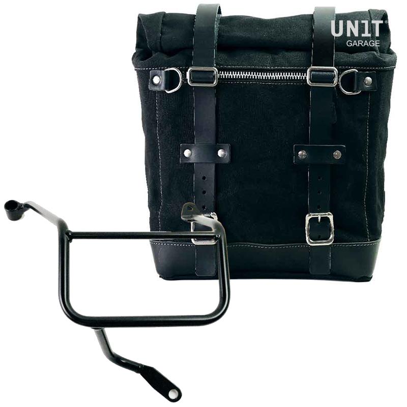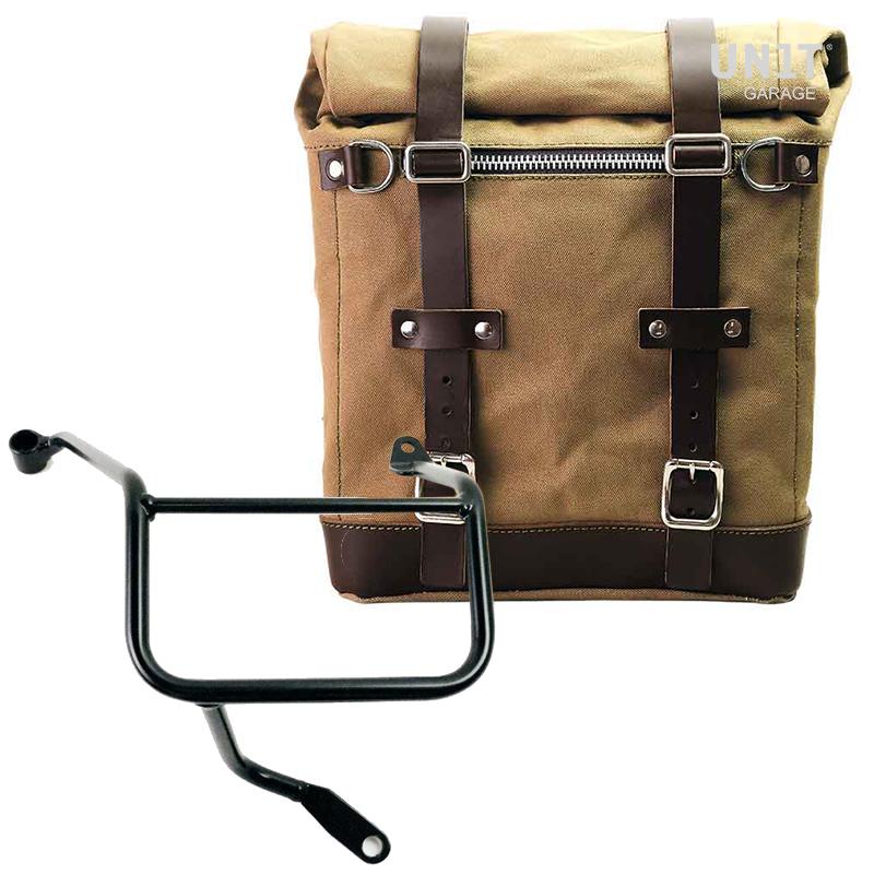 Sacoche latérale Scram extensible de 22 à 30 litres fabriquée à la main en Italie en coton imperméable robuste de la plus haute qualité.