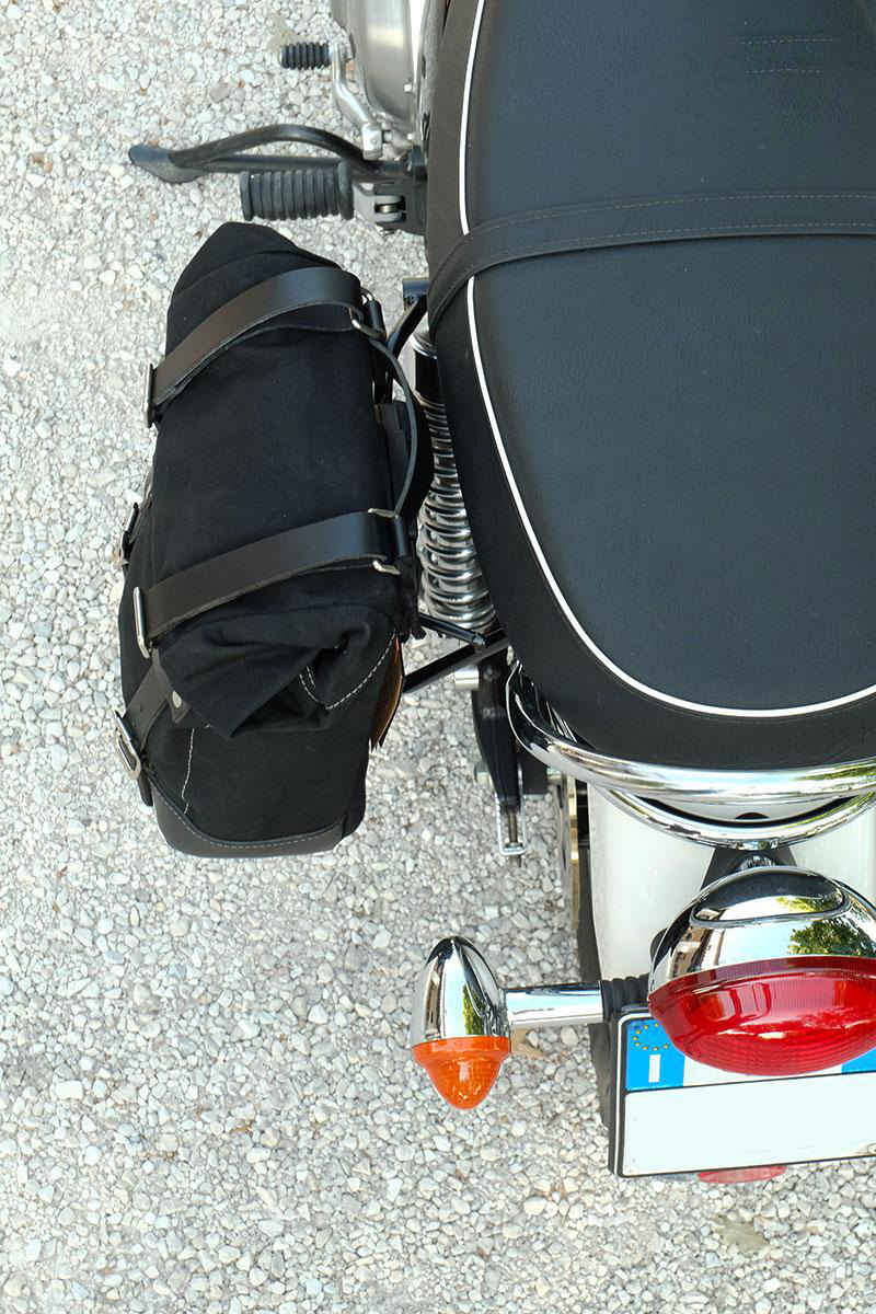 Conçu sur le cadre Triumph, il s'intègre parfaitement au reste de la moto. Prêt à accueillir notre système d'attache rapide, beau et minimal même lorsque le sac n'est pas monté.