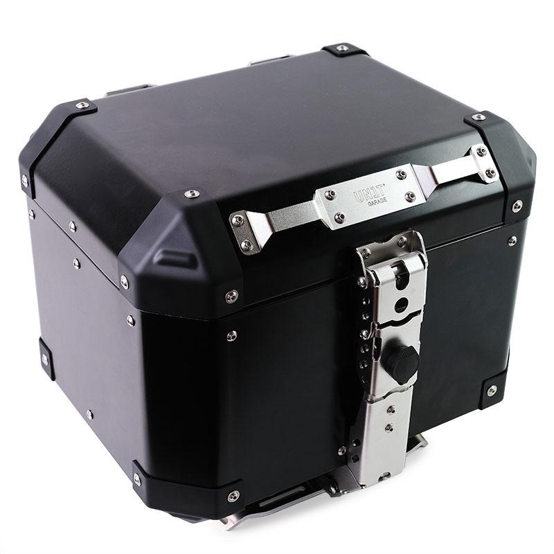 Nous voulions des sacs élégants, classiques et robustes, avec de belles charnières en acier et des détails soignés : des détails créés pour l'aventure et résistants à toutes les conditions. Le couvercle est équipé de fixations à l'intérieur et un élastique est inclus pour servir de support pour les gants, les documents et les petits objets. La retenue du couvercle est en cuir avec des boutons-pression amovibles. La fermeture est conçue pour loger un cadenas supplémentaire en plus de celui fourni. Le corps du boîtier est entièrement doublé de néoprène robuste de 2,5 mm capable d'absorber les chocs. Les charnières, les serrures et tous les détails sont en acier inoxydable électropoli, ce que vous ne trouverez dans aucun produit similaire sur le marché. Les coins sont en ABS robuste qui peut être remplacé en cas de chute ainsi que chaque composant. Nos sacs Alu sont entièrement Made in Italy, assemblés à la main un par un.