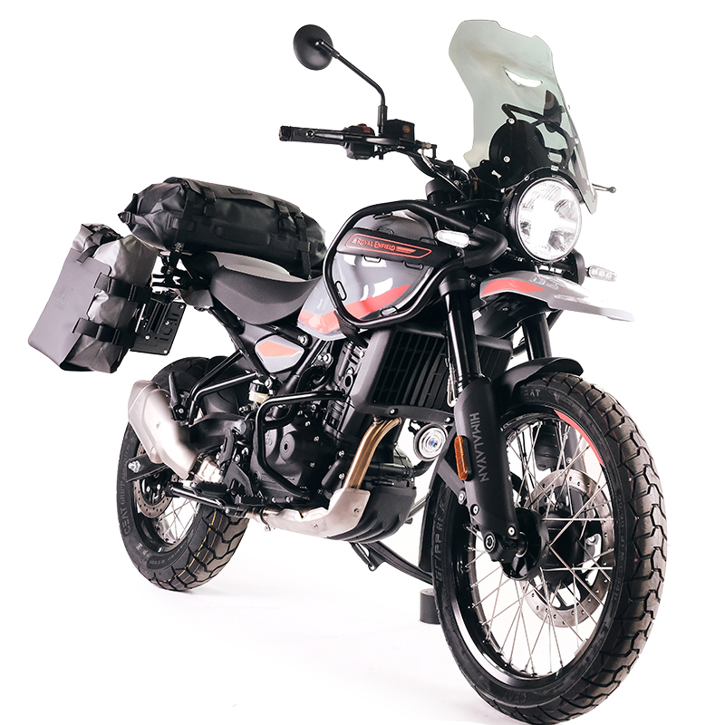 Conçu sur le châssis Royal Enfield. Il s'intègre parfaitement au reste du vélo. Prêt à accueillir notre système d'attache rapide, beau et minimal même lorsque le sac n'est pas monté. Il peut être utilisé confortablement avec le passager à bord et est compatible avec nos barres de toit.