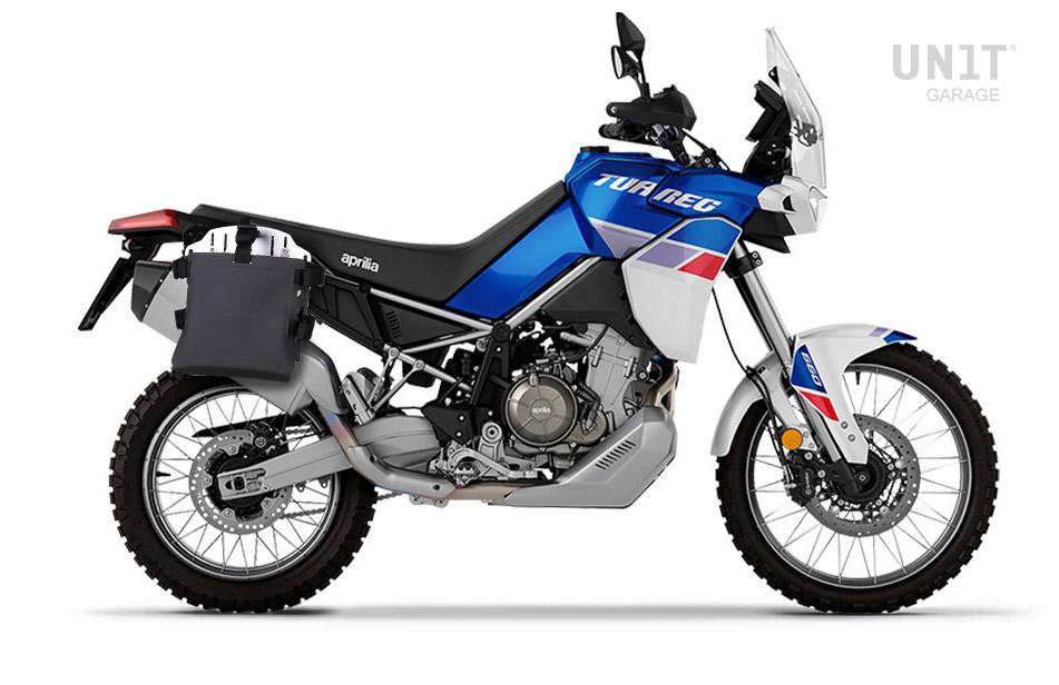 Conçu sur l'Aprilia Tuareg 660 il s'intègre parfaitement au reste de la moto. Prêt à accueillir notre système de fixation rapide, beau et minimal même lorsque le sac n'est pas monté. Il est livré complet avec des vis et peut être facilement monté sur le vélo dans sa configuration d'origine. Il peut être utilisé confortablement avec le passager à bord