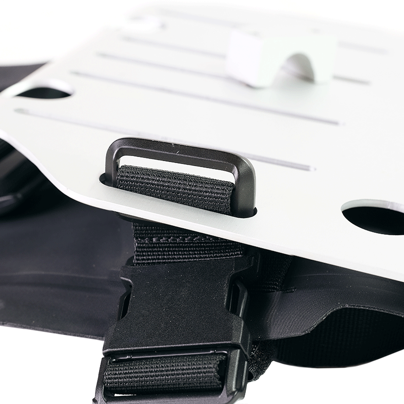 Plaque porte-sac en aluminium anodisé avec façade réglable en Hypalon. Se fixe rapidement à nos cadres porte-sacs avec le système de dégagement rapide code U000 déjà inclus et monté à l'arrière du sac.