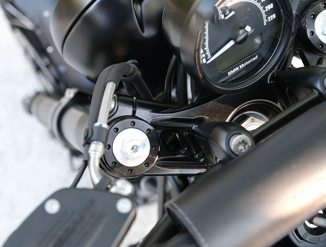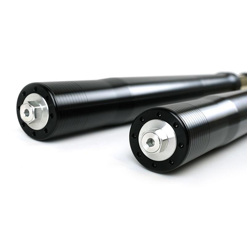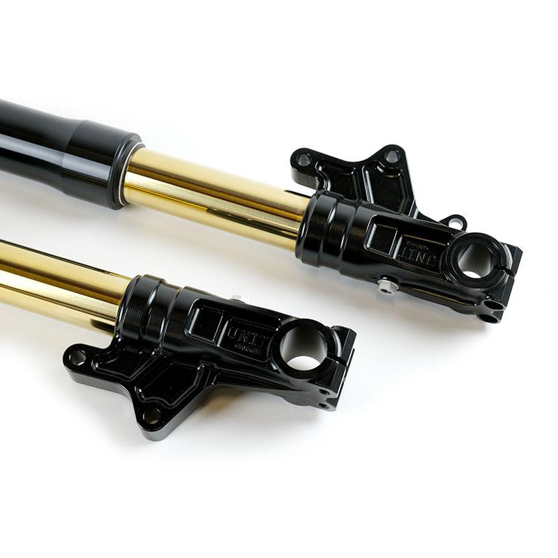 Les suspensions standard des modèles nineT sont assez basiques, pour rendre votre vélo plus performant et confortable nous avons étudié et testé une série de possibilités, cette solution est le TOP de la gamme. C'était un travail de longue haleine, mais le résultat nous a même surpris, le vélo change de caractère et devient beaucoup plus amusant et utilisable sur tout type de parcours. Cela vous permettra d'avoir des suspensions de course personnalisées et le confort de conduite sera fantastique. Nous avons mis en œuvre une fantastique fourche Öhlins FG 424 avec des plaques et des pieds spécialement conçus, usinés à partir de CNC solides. Les réglages de compression et de rebond sont faciles à réaliser. La nouvelle fourche avant offre une amélioration significative de la maniabilité sur route et hors route. La conception des plaques et des pieds a été repensée pour rendre toute la partie avant très « méchante » et rendre tout plug and play. Vous pouvez réutiliser : les étriers d'origine et les vis associées, le support de phare et les rehausseurs de guidon d'origine, la tête de direction, les écrous de serrage et les roulements.