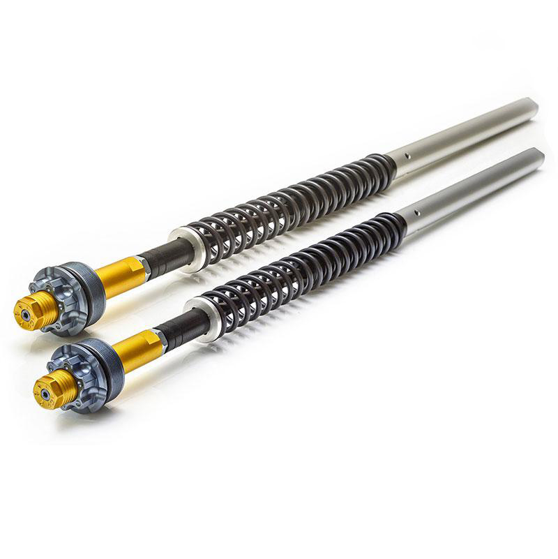 Paire de cartouches à réglage hydraulique pour fourche d'origine, développées selon nos spécifications et équipées d'un système hydraulique sophistiqué qui garantit des performances exceptionnelles. Pistons avec passages d'huile accrus.