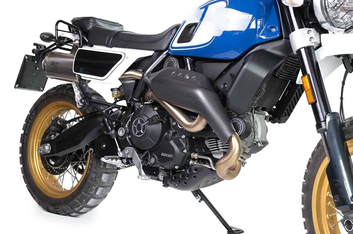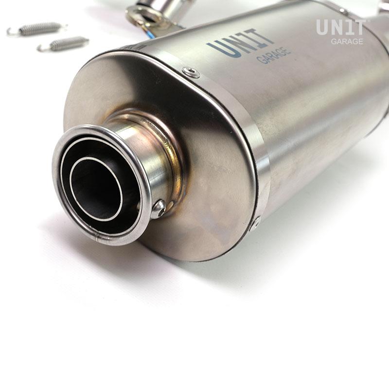 Pour la Ducati Scrambler nous voulions un échappement spécial, quelque chose d'unique... et nous pensons avoir réussi ! Raccord en acier inoxydable avec terminal en titane et protection en fibre de carbone entièrement fait à la main, dans le parfait style GP. Il pèse 5 450 kg de moins que l'original et dispose d'un DB-Killer amovible. Il se monte facilement sans apporter de modifications au vélo. Il rappelle les échappements deux temps des années 70, et en plus d'être beau il est très performant. Conçu pour le kit "Fuoriluogo", il peut également être monté sur le vélo d'origine. Le son vous rendra dingue et la prestation... aussi !