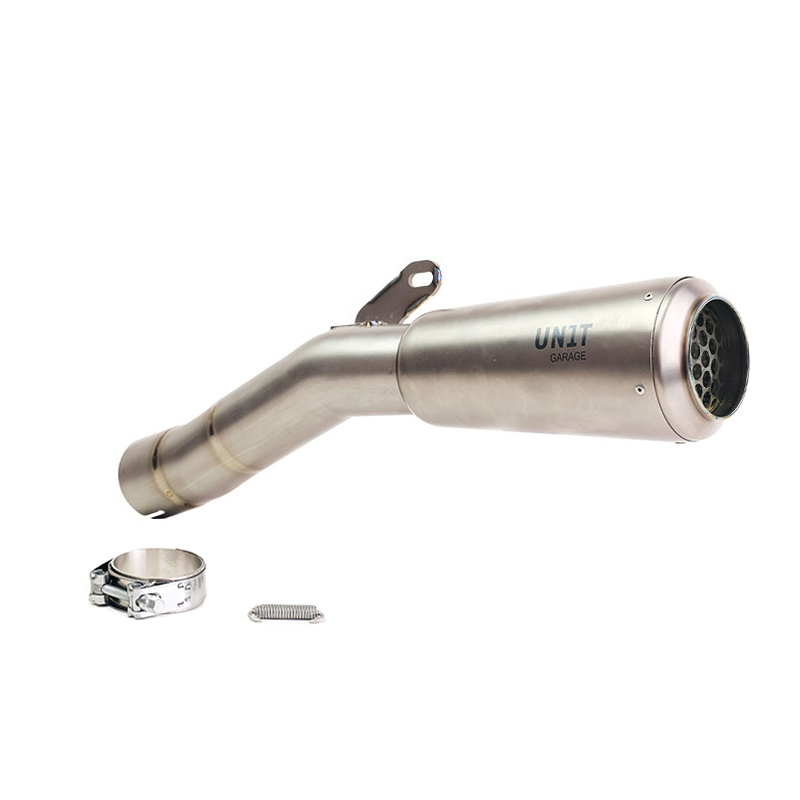 Borne et raccord en titane avec soudures apparentes travaillés entièrement à la main, dans un parfait style Moto GP.