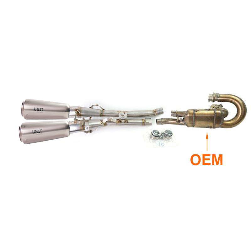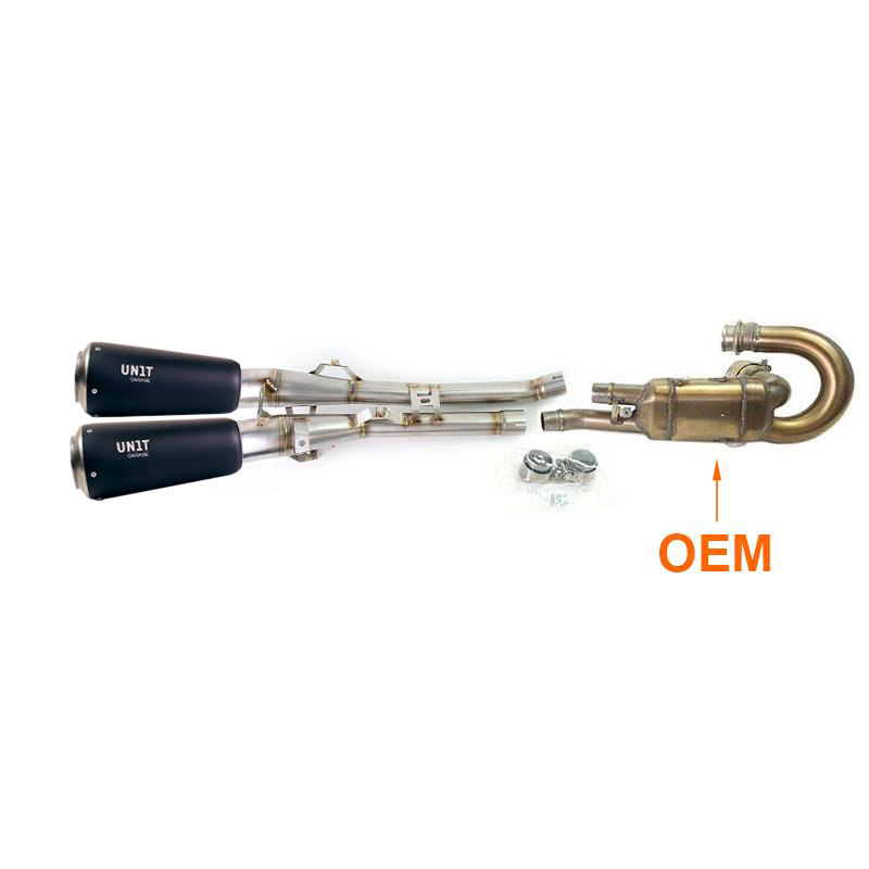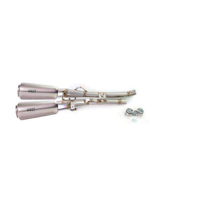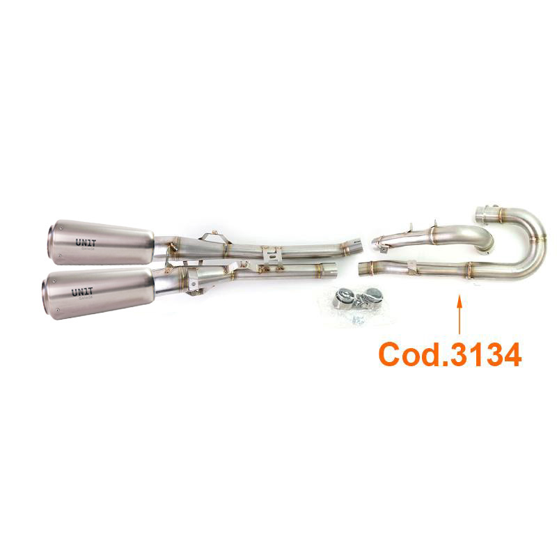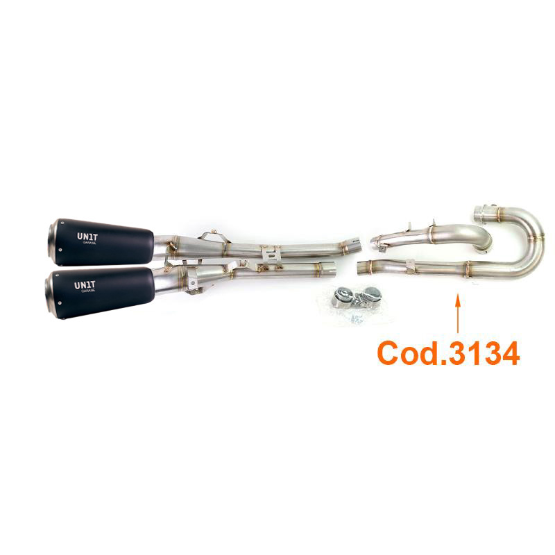 Pour la Triumph, nous voulions un échappement spécial, quelque chose d'unique... et nous pensons avoir réussi ! Tube central en acier inoxydable et silencieux en titane travaillés entièrement à la main, dans un parfait style GP. Il pèse 3,5 kg de moins que l'original. Il se monte facilement sans apporter de modifications à la moto, la chaleur de l'échappement est considérablement réduite et les performances et la puissance de votre Triumph vous rendront fou ! Le moteur vous remerciera... et votre jambe droite sera en sécurité :). Le protecteur d'échappement peut être remonté sans aucun problème. Il peut être combiné avec des collecteurs sans catalyseur code 3134 ou avec le collecteur d'origine.