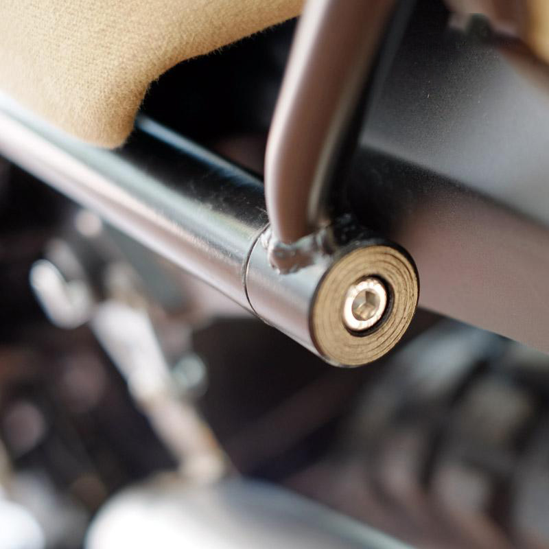 Ce cadre permet de raccourcir la totalité de la partie arrière. Avec un seul accessoire, vous pourrez rapidement changer tout l’arrière, en finissant l’arrière de la moto de manière fantastique, en repositionnant la plaque d’immatriculation et le projecteur fourni. Il se monte rapidement et est équipé d'extenseurs spéciaux qui permettent une fixation ferme au châssis sans avoir à utiliser le poste de soudage et bien sûr ... sans avoir à repeindre. Le garde-boue arrière peut rester l’original ou si vous voulez, vous pouvez monter un aluminium classique. Inclus dans le kit de montage: cadre en métal peint, phare avec lampes, support de plaque d'immatriculation en aluminium avec supports pour flèches basiques Code 1523 (flèches non incluses).