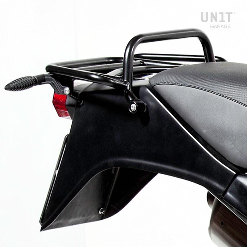 Porte-bagages en acier traité avec des peintures en poudre à haute résistance. Il se monte très facilement à l'aide des entretoises en aluminium et des vis d'origine.