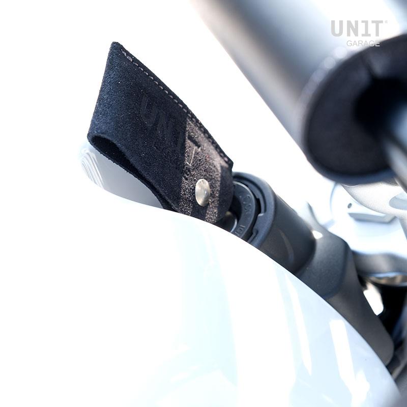 Porte-clés en cuir refendu imprimé avec notre logo. Il peut être utilisé avec une seule clé, ou avec plusieurs clés en ajoutant un anneau.