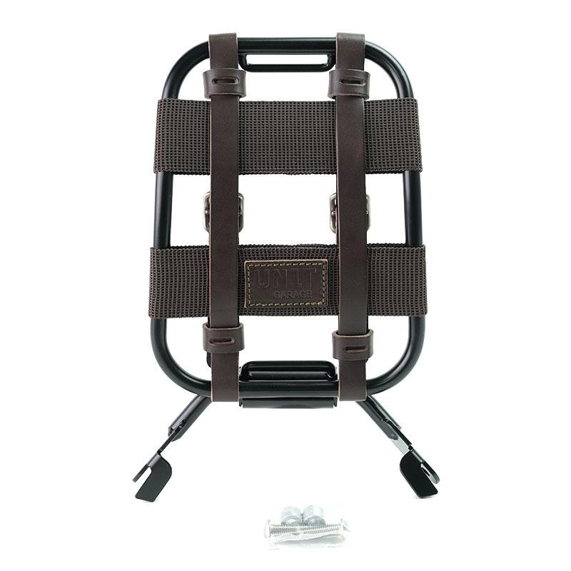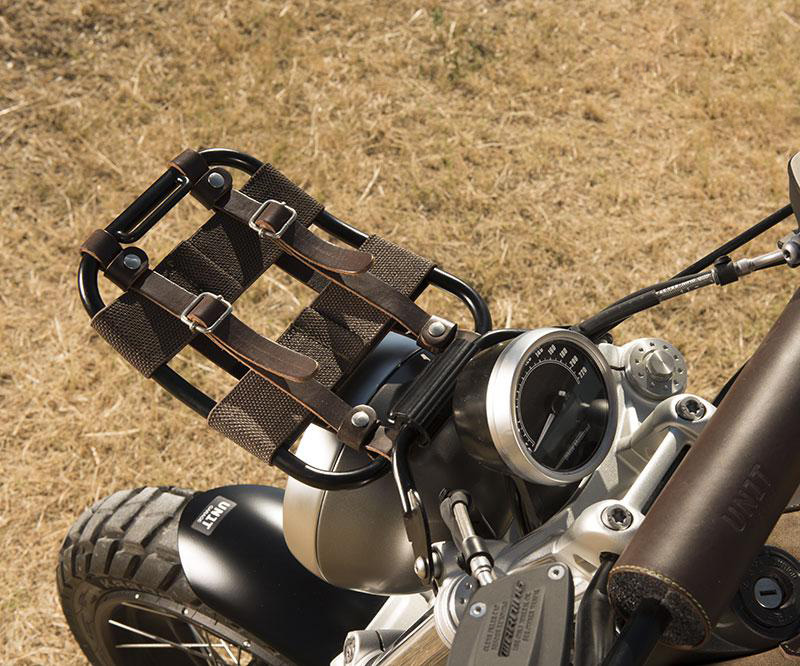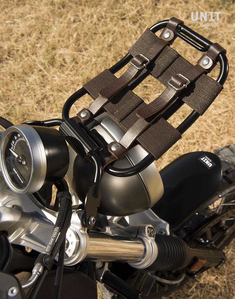 Fabriqué en tube d'acier avec une finition époxy noire et des accessoires en cuir marron, cet élégant accessoire élargit la gamme de nos produits déjà disponibles pour les modèles NeufT Scrambler et Pure.