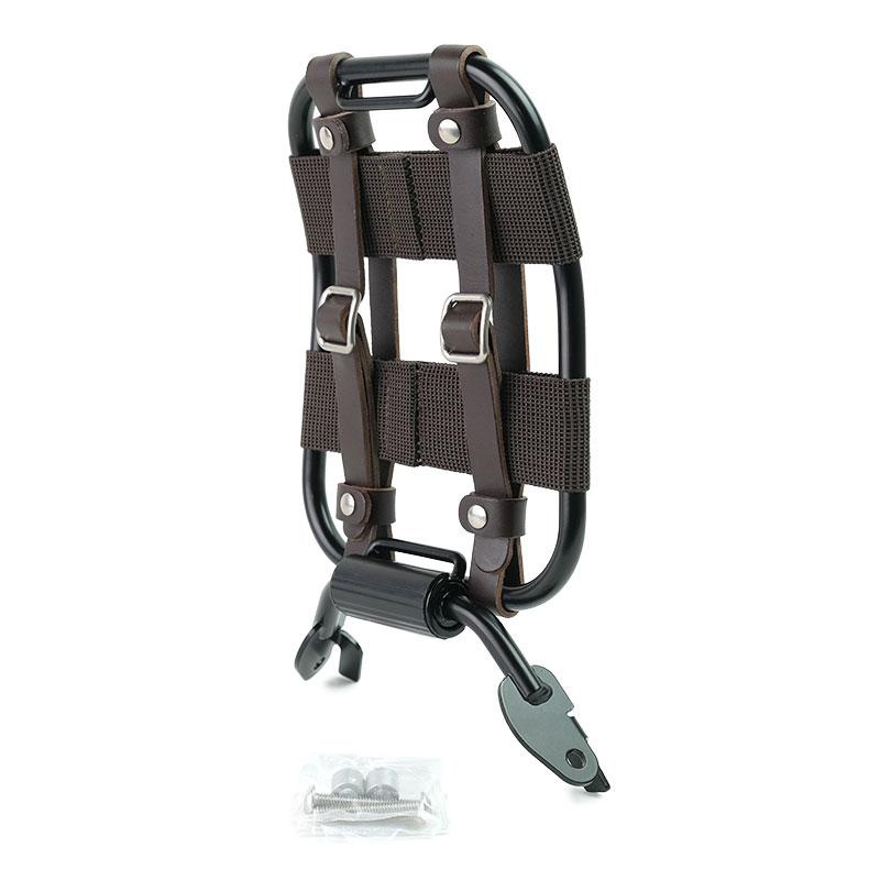 Il est fourni prêt à assembler, il est fixé aux plaques de fourche avec les vis fournies et peut être positionné de manière verticale et horizontale pour devenir un porte-bagages sur lequel vous pouvez attacher des petits objets tels que des sacs de couchage ou des petits sacs.