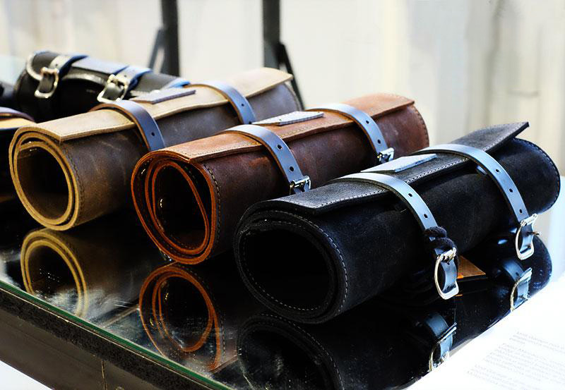Au début, nous avons pensé à un robuste rouleau d'outils en croûte de cuir ciré,