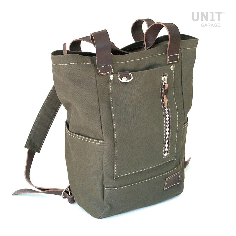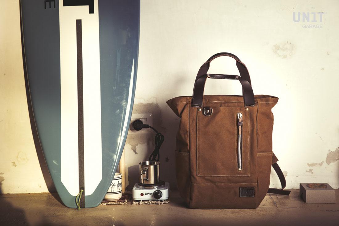 Sac à dos fait à la main en Italie en coton imperméable robuste de qualité supérieure; traité avec de la cire qui le rend résistant à l'eau.