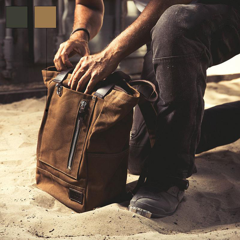 Sac à dos fait à la main en Italie en coton imperméable robuste de qualité supérieure; traité avec de la cire qui le rend résistant à l'eau.